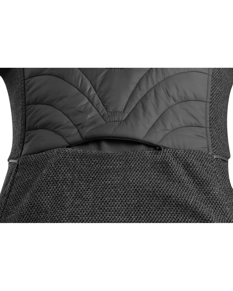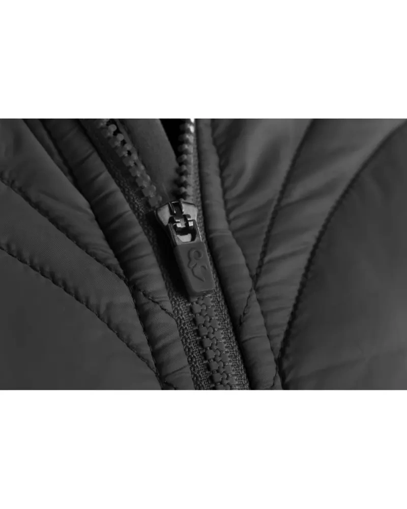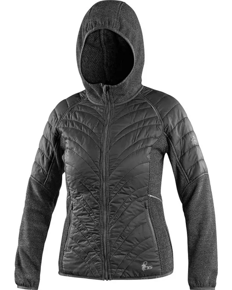 Prošívaná část je lehce zateplená, zatímco kapuce, boky a rukávy jsou z příjemné pleteniny