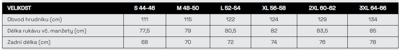 V oblasti trupu je bunda větruodolná