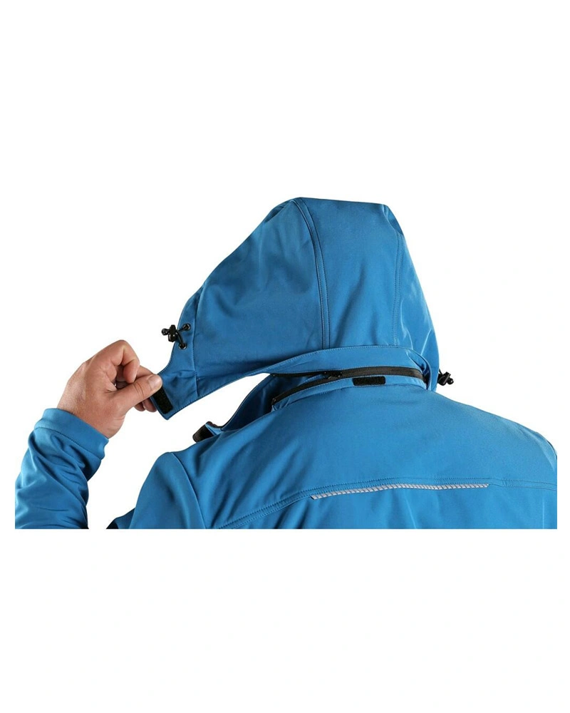Pánská softshellová bunda, odolná proti vodě a větru, odepínací kapuce, větrání v podpaží, náprsní kapsy - na druk a zip, boční kapsy na zip, vnitřní manžety v rukávech, stahování v dolním okraji, reflexní doplňky, vnitřní náprsní kapsa, TPU membrána. Odolnost materiálu proti průniku vody 5 000 mm mimo oblast švů, paropropustnost 5 000 g/m2/24 h. Podšívka kombinovaná s fleecem.
