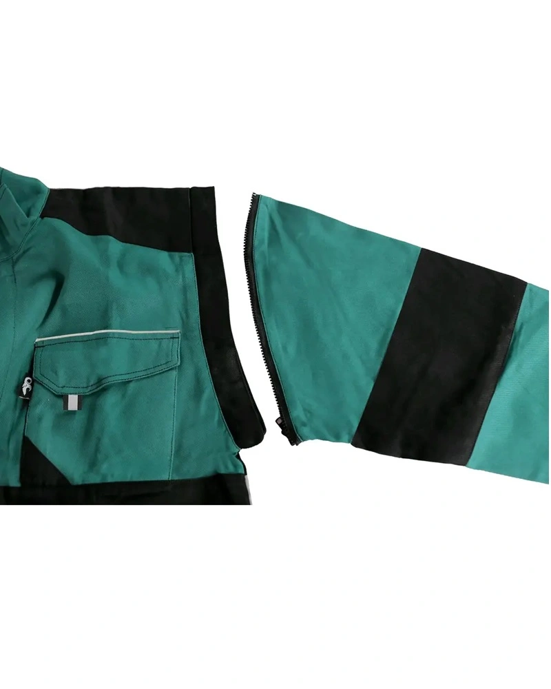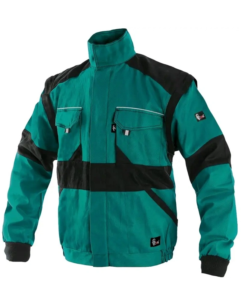 Pánská pracovní bunda se zapínáním na zip krytým légou, odepínatelné rukávy. 2 přední kapsy, 2 náprsní kapsy. Zesílení namáhaných míst loktů a ramen, reflexní pruhy po odvodu rukávů a ve spodní části zad, pružné manžety rukávů a spodní obvod v pase.