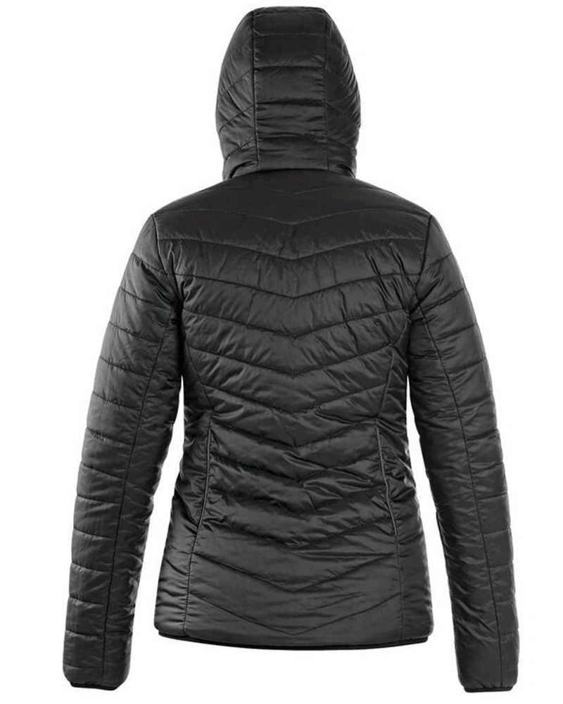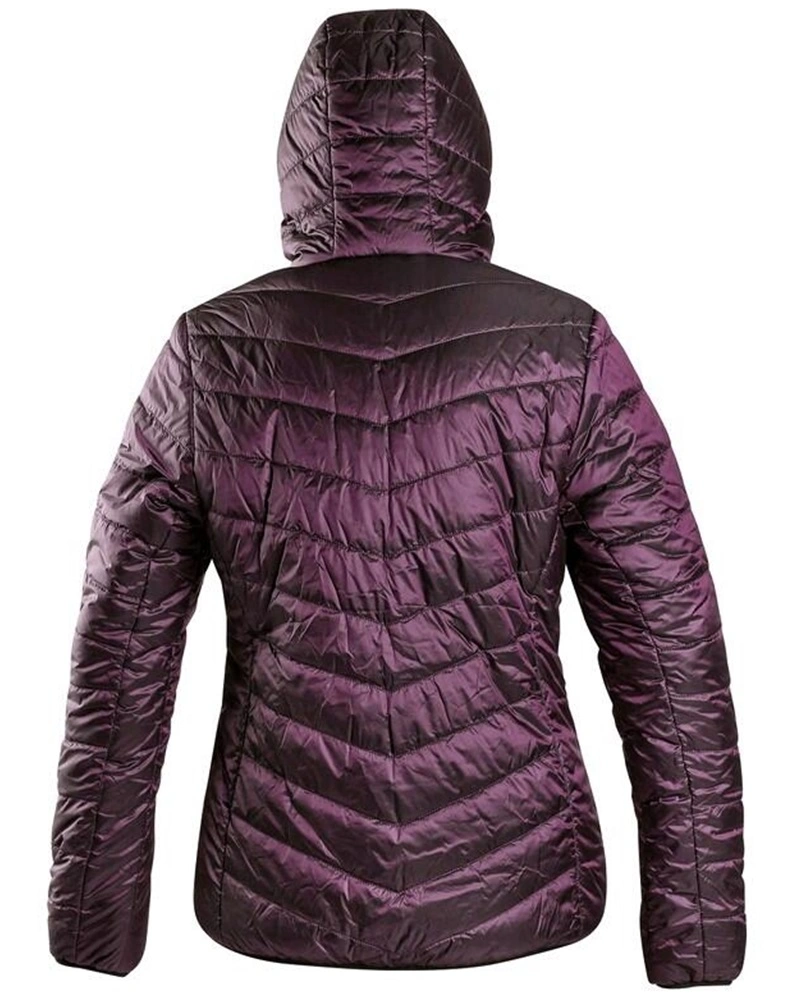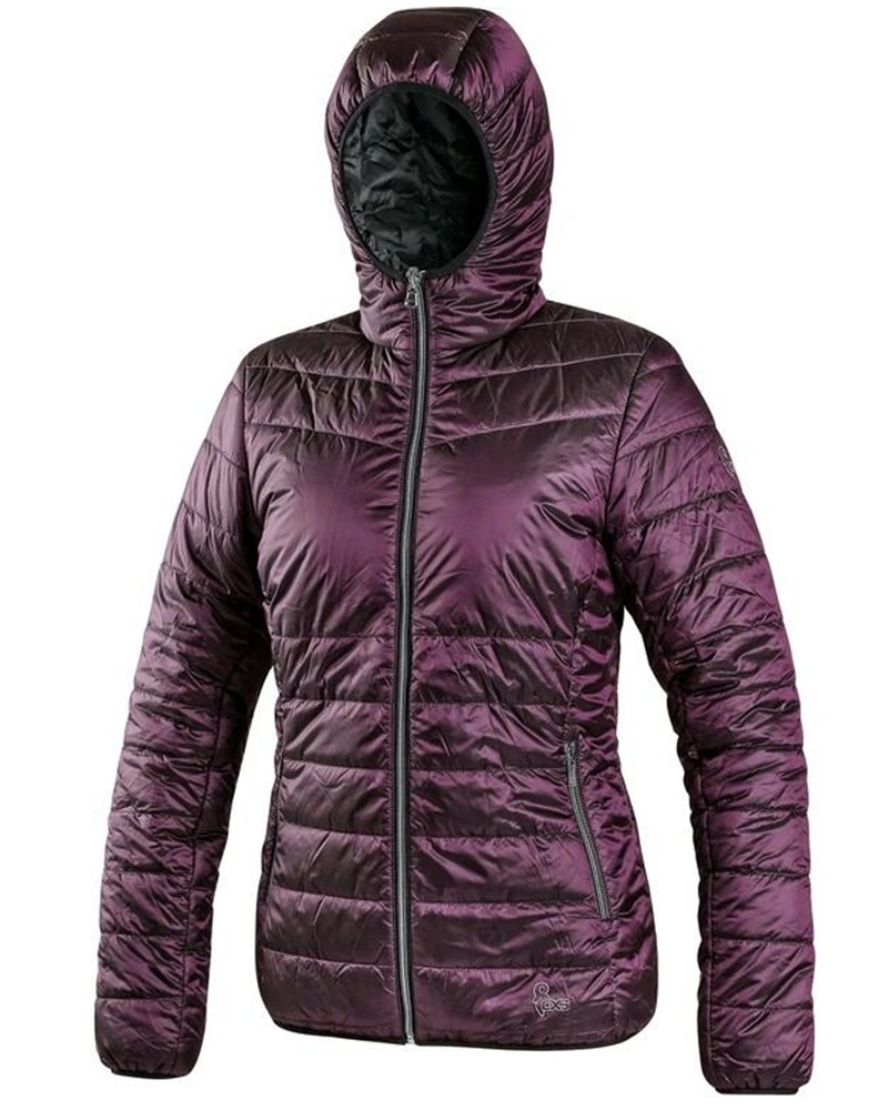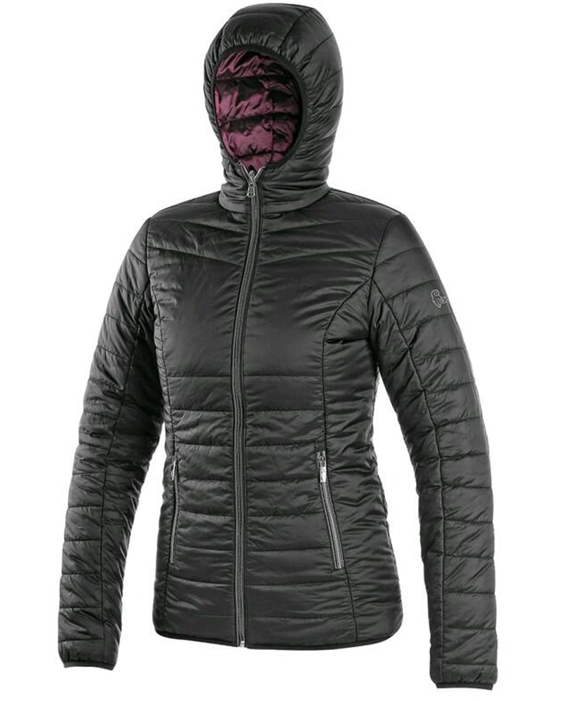 Dámská oboustranná zateplená bunda s kapucí a reflexními doplňky. Bunda má zapínání na zip, rukávy a spodní lem do gumičky, 2 boční kapsy na zip s reflexními doplňky a reflexní výpustky vzadu na bocích.