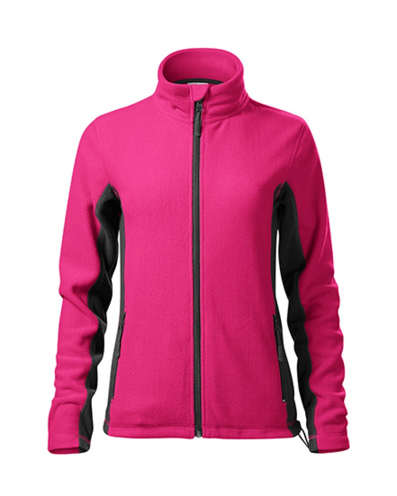 Dámska fleecová mikina s celopropínacím spirálovým zipem s krytkou brady, vnitřní průkrčník začištěn kontrastní páskou, kapsy se spirálovým zipem, dolní lem na stažení elastickou šňůrkou, dekorativní prošití.