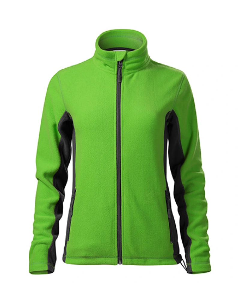 Dámska fleecová mikina s celopropínacím spirálovým zipem s krytkou brady, vnitřní průkrčník začištěn kontrastní páskou, kapsy se spirálovým zipem, dolní lem na stažení elastickou šňůrkou, dekorativní prošití.