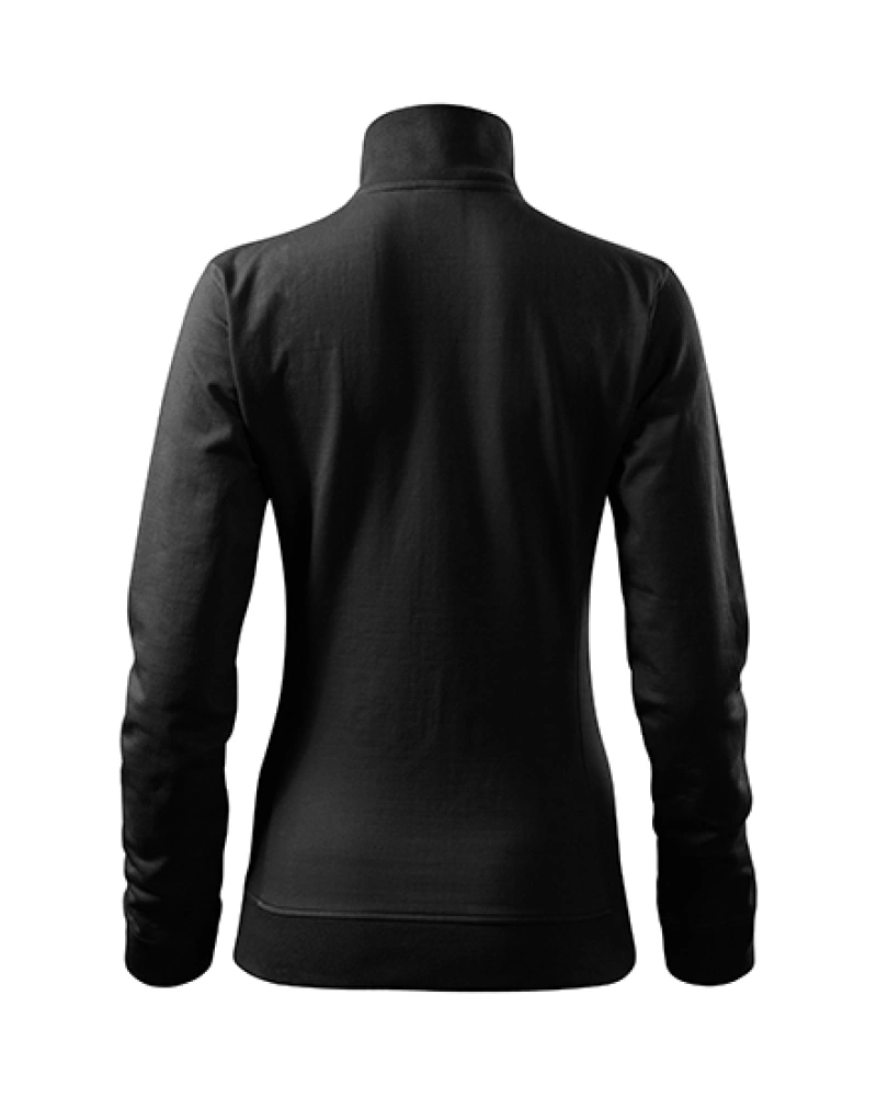Dámská mikina s celopropínacím stříbrným spirálovým zipem, střihu tvarovaný bočními díly, stojáček a boční díly z žebrového úpletu 2:2 s 5 % elastanu, vnitřní průkrčník začištěn páskou v barvě vrchového materiálu, nakládané kapsy ve stylu klokanky. Dolní lem, manžety a lemy kapes z žebrového úpletu 2:2 s 5 % elastanu.