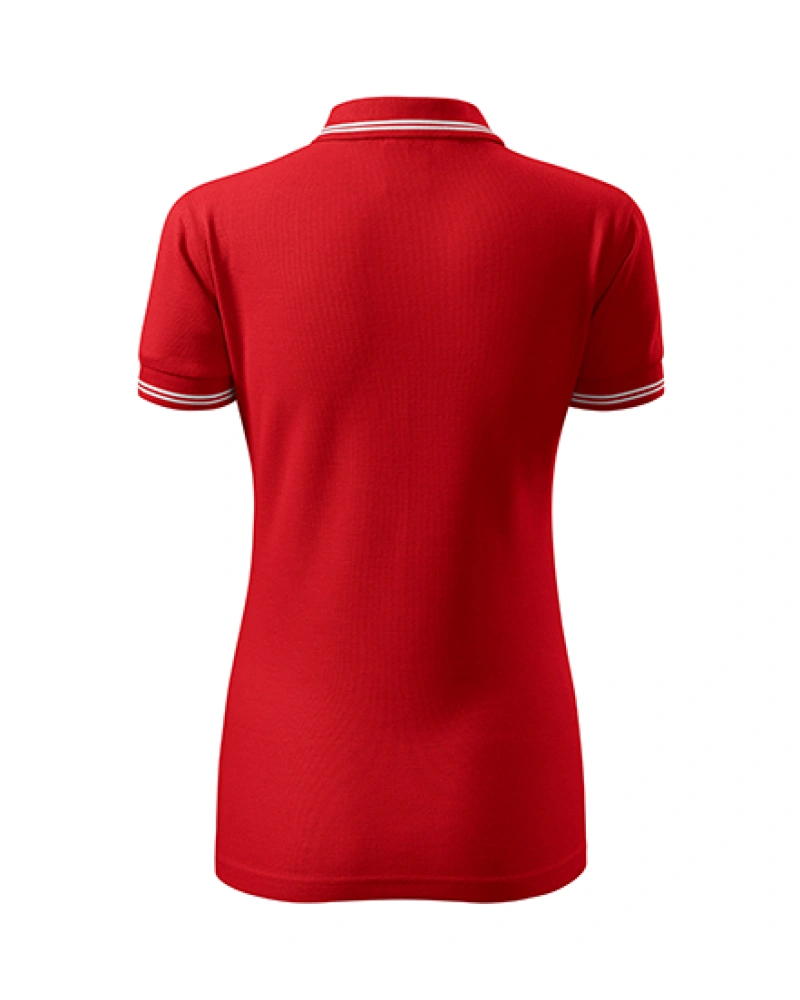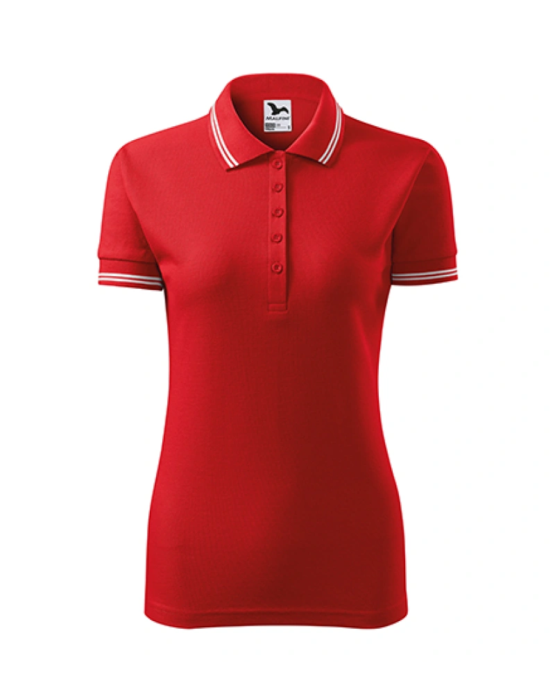 Dámská polokošile s dvojitým kontrastním proužkem na límci a manžetě. Límec a manžety na rukávech z žebrového úpletu 1:1. Lehce vypasovaný střih s bočními švy, zpevněný ramenní šev, úzká léga s 5-ti knoflíčky v barvě materiálu, vnitřní průkrčník začištěn páskou z vrchového materiálu.