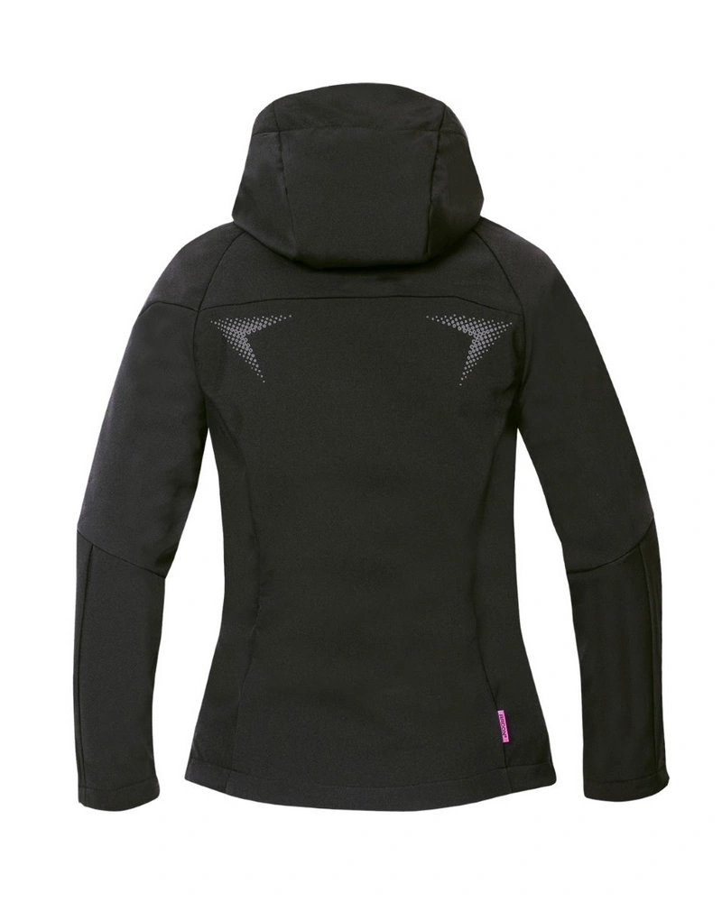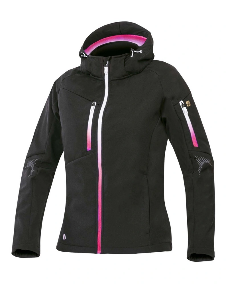 Dámská softshellová bunda s kapucí z elastického materiálu ElasticTech®Flexi s membránou je voděodolná, větruvzdorná a zároveň prodyšná. Obvod odepínatelné kapuce i spodní okraj bundy lze regulovat pomocí stoperů. Vnitřní část tvoří příjemný fleece. Bunda s raglánovými rukávy má anatomicky tvarovaný funkční střih SLIM FIT, průběžný zip s krytkou brady, 1 zipovou náprsní kapsu a 1 zipovou kapsu na levém rukávu, 2 zipové boční kapsy. Pro bezpečnost pohybu je vybavena reflexními prvky. Díky modernímu designu má bunda všestranné využití v outdooru, sportu i volnočasových aktivitách.
