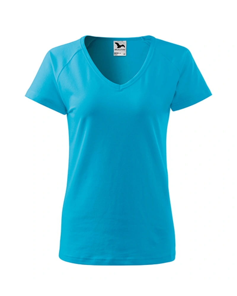 Dámské tričko s krátkým raglánovým rukávem přiléhavého střihu s bočními švy, výstřih ve tvaru V, průkrčník lemován vrchovým materiálem.Více informací