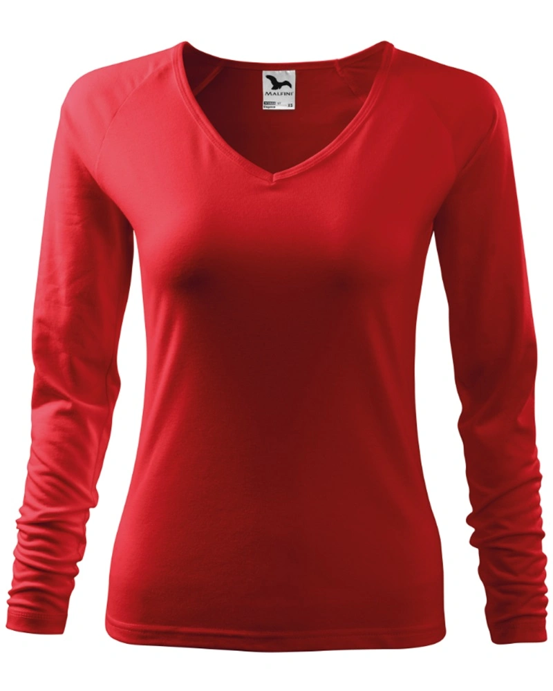 Dámské tričko ELEGANCE přiléhavého střihu s bočními švy, výstřih ve tvaru V, průkrčník lemován vrchovým materiálem, dlouhé raglánové rukávy.