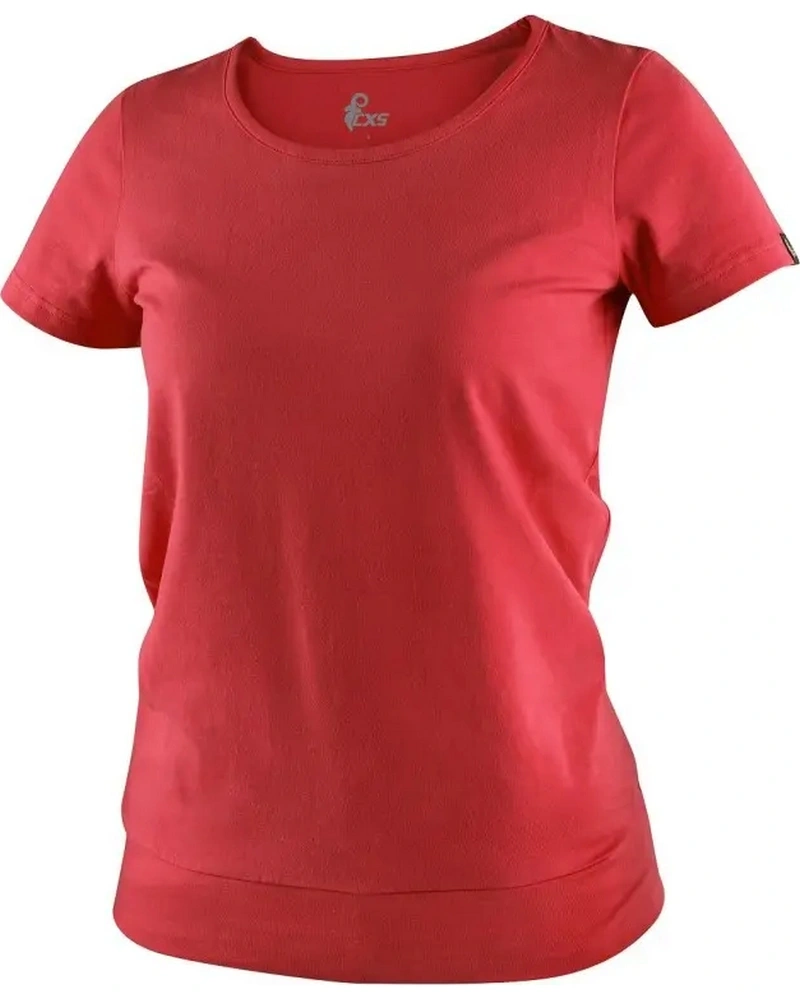 Dámské tričko volnějšího střihu s pružným lemem v pase, kulatým průkrčníkem a bočními švy. Finální silikonová úprava materiálu, která zajišťuje vyšší měkkost a odolnost vůči zašpinění. Použití v práci i pro volný čas.