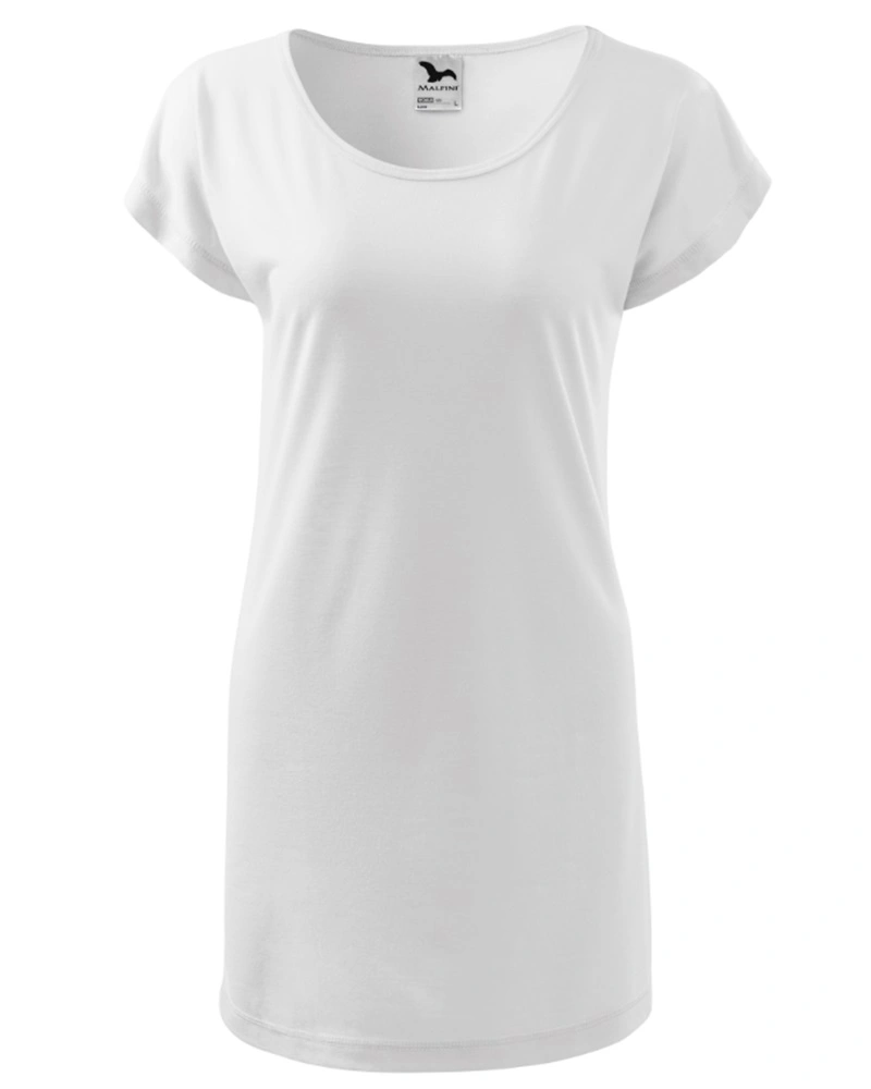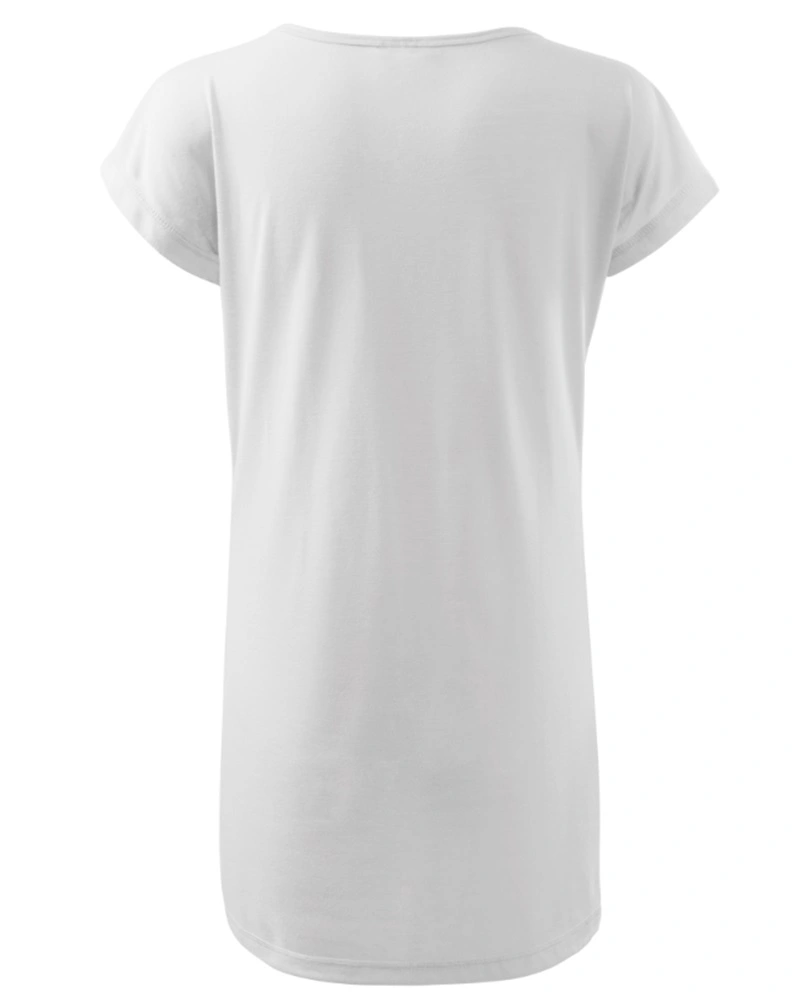 Dámské tričko/šaty volného střihu s bočnímy švy. Délka pod úroveň boků, lodičkový výstřih. průkrčník lemován vrchovým materiálem, kimonové rukávy.Více informací
