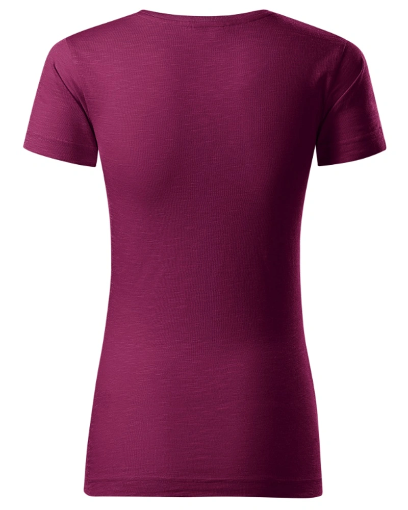 Dámské tričko NATIVE lehce vypasovaného střihu s bočními švy, úzký lem průkrčníku z vrchového materiálu s 5 % elastanu, vnitřní část průkrčníku začištěna páskou z vrchového materiálu, zpevnění ramenních švů páskou.