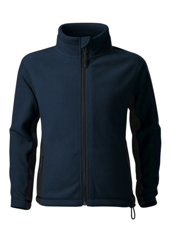 Dětská fleecová mikina s celopropínacím spirálovým zipem s krytkou brady, vnitřní průkrčník začištěn kontrastní páskou, kapsy se spirálovým zipem, dolní lem na stažení elastickou šňůrkou, dekorativní prošití.