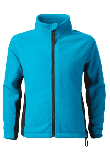 Dětská fleecová mikina s celopropínacím spirálovým zipem s krytkou brady, vnitřní průkrčník začištěn kontrastní páskou, kapsy se spirálovým zipem, dolní lem na stažení elastickou šňůrkou, dekorativní prošití.