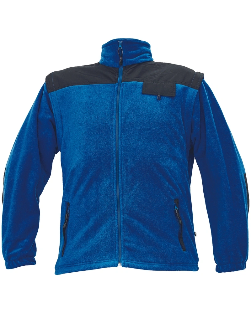 Komfortní celopropínací fleecová bunda 2 v 1 sportovního designu s odepínatelnými rukávy. Ramena a lokty jsou zesíleny oděruvzdornou, voděodolnou polyamidovou tkaninou pro zvýšení životnosti a odolnosti povětrnostním vlivům. 2 postranní kapsy, 1 náprsní kapsa, elastické manžety rukávů, antipillingová úprava.