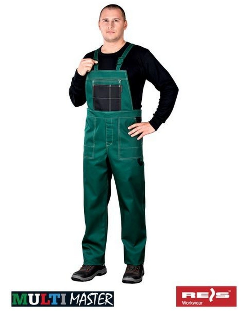 Pánské montérkové kalhoty, pas s poutky na opasek a gumou v bocích, přední klínové kapsy, multifunkční kapsy na obou stranách, kolena zesílena materiálem 600D polyesterem s možností vložení kolenních výztuh, dvě zadní kapsy s klopami, reflexní doplňky.