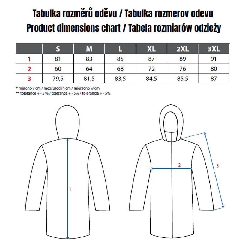 Voděodolný 3/4 plášť s kapucí, prodloužená délka, všechny spojovací švy jsou zatavené, materiál s nánosem PVC, dvě přední kapsy kryté légami proti průniku vody, vnitřní manžeta na gumu, ventilace na zádech a v podpaží.