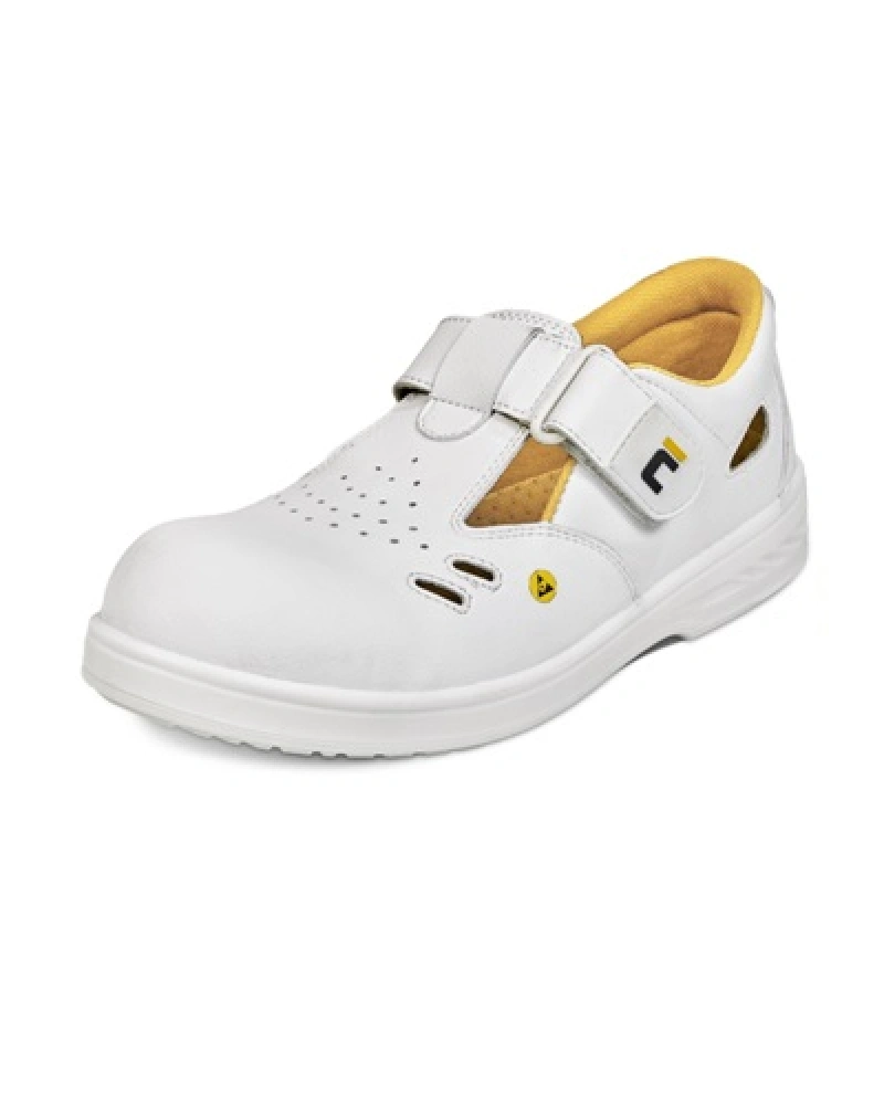 Pracovní ESD sandál. Podešev z jednohustotního PU. Svršek z inovativního mikrovlákna, které zajišťuje uživateli perfektní prodyšnost.