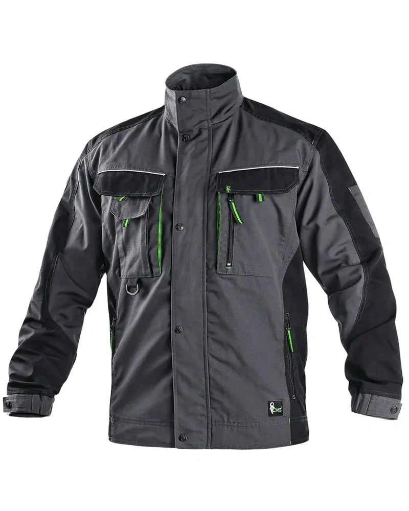 Pánská pracovní bunda vysoké odolnosti, 2 přední kapsy, 2 náprsní kapsy, 1 náprsní kapsa na mobilní telefon, odvětrání pod pažemi, Oxford 600D zesílení namáhaných míst, zesílené zdvojené lokty, rukávy zakončené elastickou manžetou.
