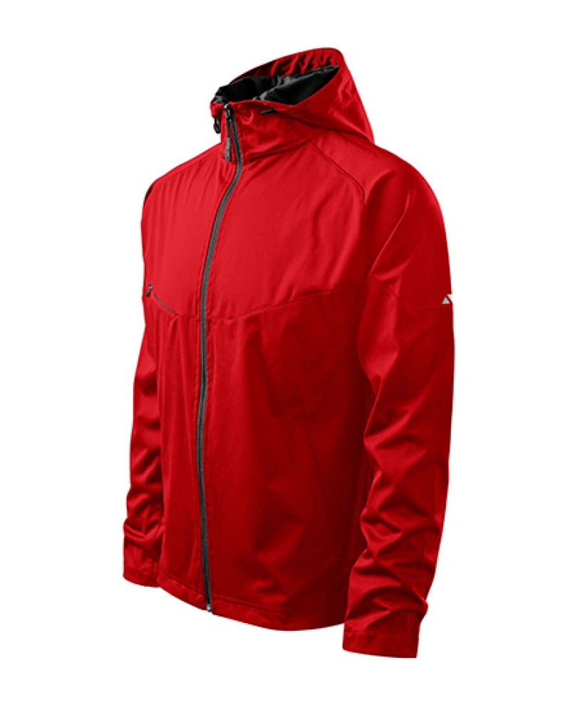 Lehká pánská softshellová bunda s kapucí. Celopropínací reverzní spirálový zip, kapuce a dolní lem na stažení elastickou šňůrkou, lemy rukávů nastavitelné suchým zipem, lištové kapsy s reverzním spirálovým zipem, náprsní kapsa se skrytým zipem v členícím švu, tvarovaný a mírně prodloužený zadní díl, kontrastní a reflexní prvky.