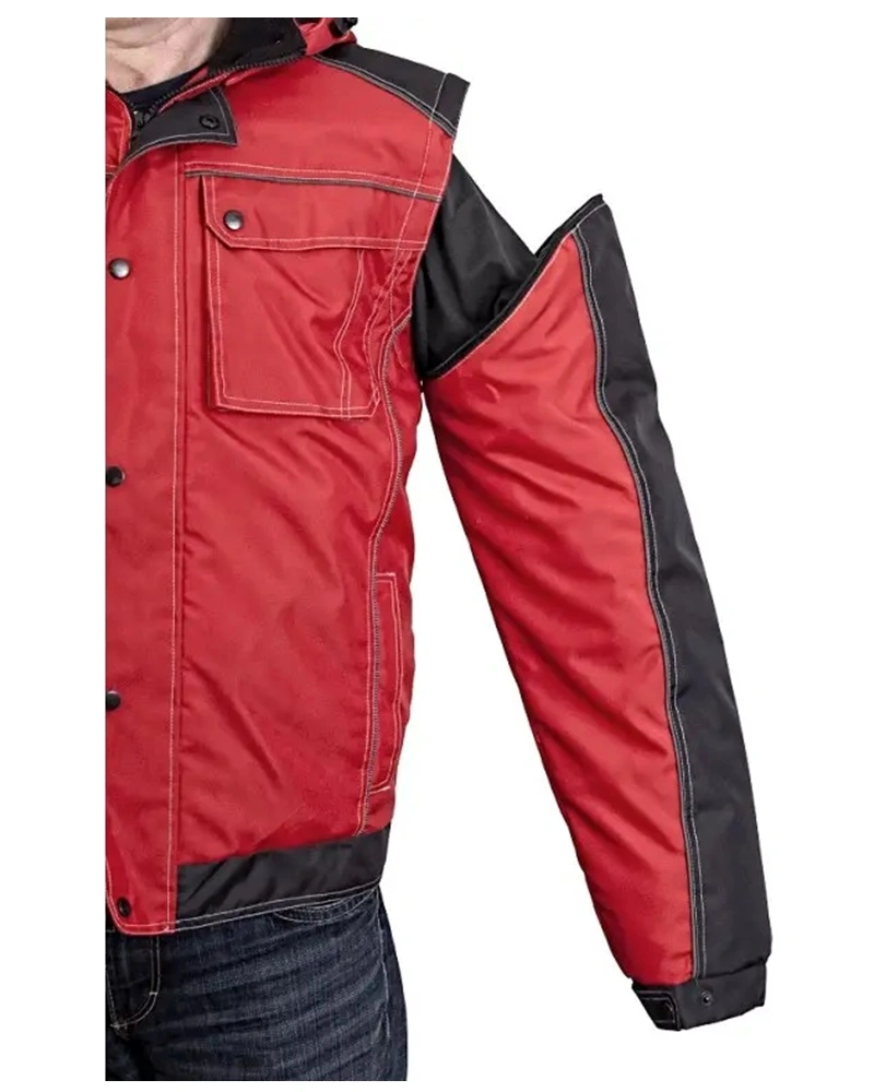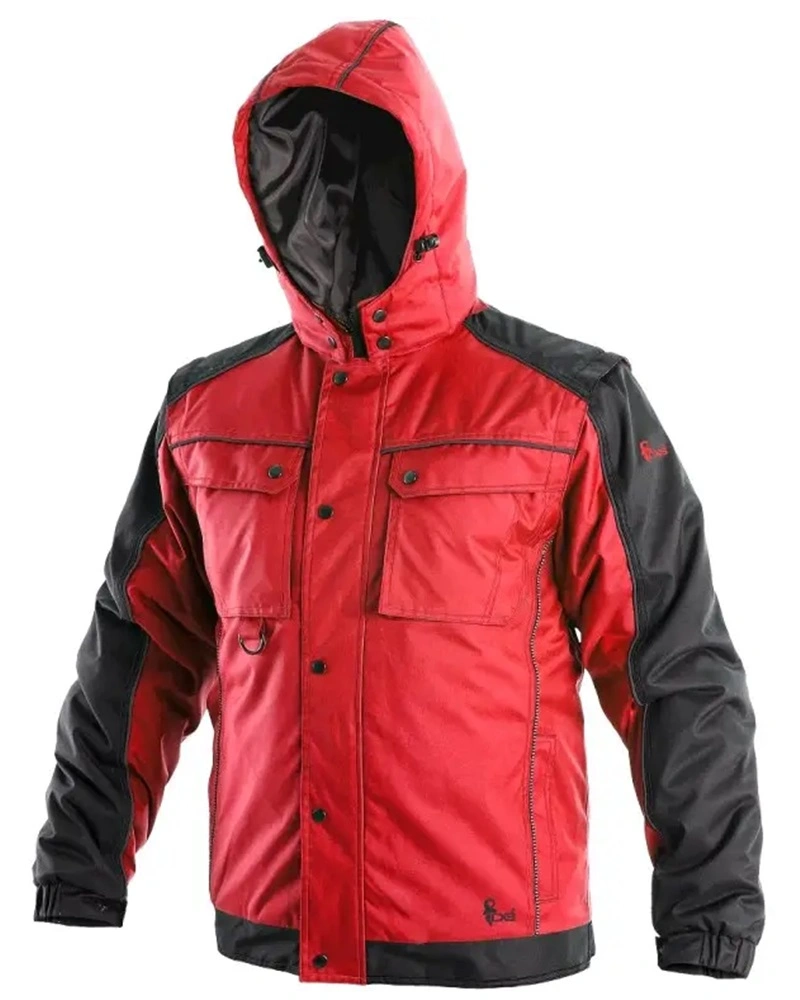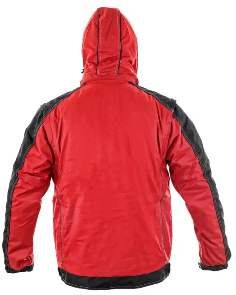Pánská zateplená bunda 2 v 1, zapínaní na zip krytý légou, odepínací kapuce, fleecový límec, odepínací rukávy, regulovatelné manžety na rukávech, plastové poutko pod pravou náprsní kapsou, stahování v dolním okraji, lepené švy, reflexní doplňky. Kapsy: 3 náprsní kapsy na zip, 2 spodní kapsy na zip, 1 vnitřní kapsa.