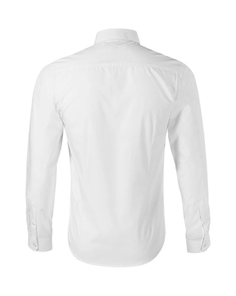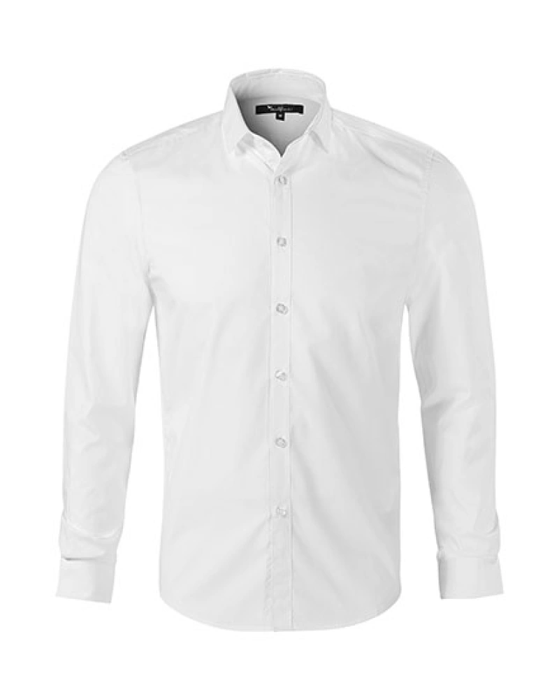 Pánská košile s dlouhým rukávem, projmutý střih s bočními švy, dvojité sedlo a záševky na zadním dílu, dvoudílný košilový límec, vyztužené špičky límce, přední kraje začištěny légou, dlouhé rukávy s šikmou manžetou na 2 knoflíčky, perleťové knoflíčky v barvě materiálu (1 náhradní navíc), tvarovaný dolní kraj.Více informací