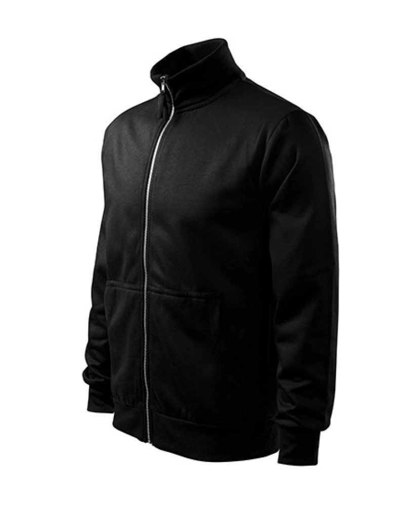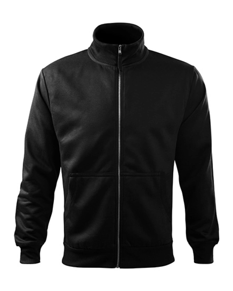 Pánská mikina rovného střihu s bočními díly, celopropínací kovový zip, stojáček a boční díly z žebrového úpletu 2:2 s 5 % elastanu, vnitřní průkrčník začištěn kontrastní páskou, nakládané kapsy ve stylu klokanky. Dolní lem, manžety a lemy kapes z žebrového úpletu 2:2 s 5 % elastanu.