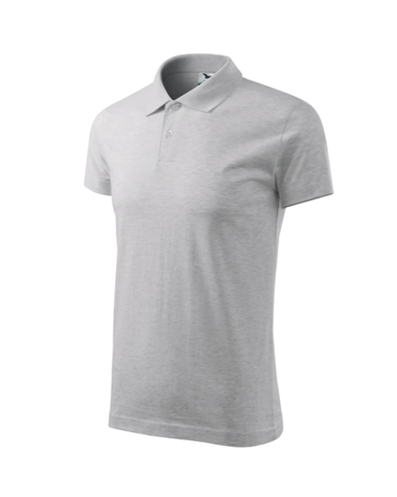 Pánská polokošile 2 kontrastní proužky na rukávu a límečku, střih s bočními švy, límeček z žebrového úpletu 1:1, léga s 3 knoflíčky v barvě materiálu, spodní knoflíček přišitý kontrastní nití, vnitřní průkrčník začištěn kontrastní páskou, zpevnění ramenních švů páskou, rozparky v bočních švech s kontrastní páskou.
