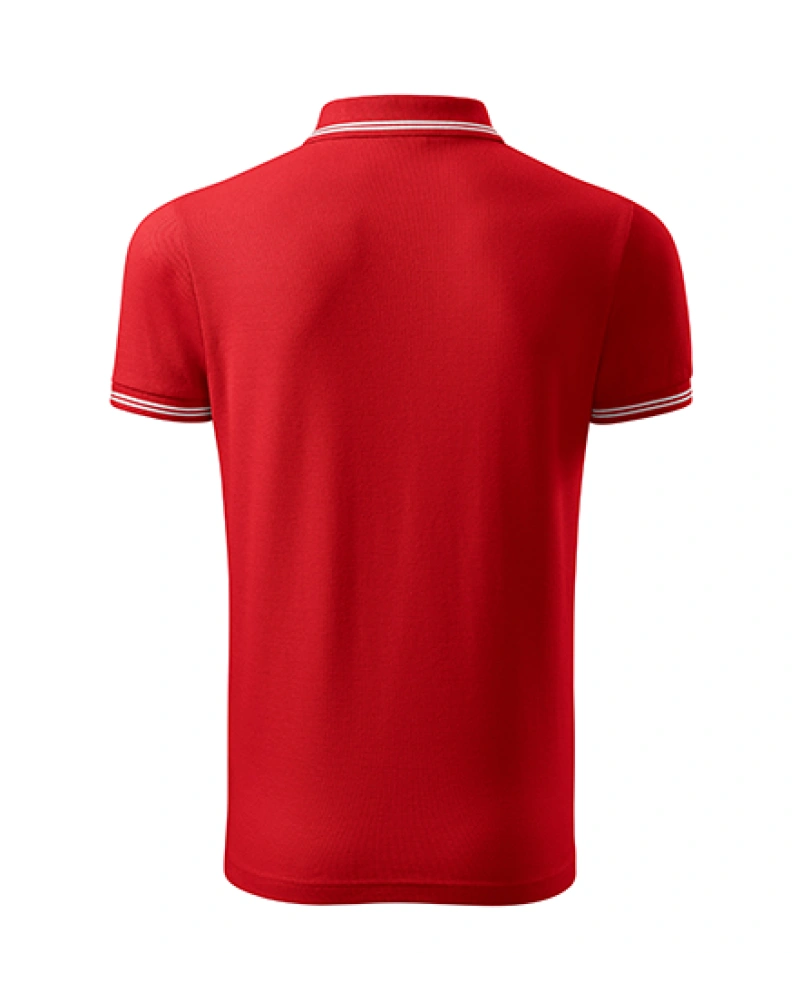 Pánská polokošile s dvojitým kontrastním proužkem na límci a manžetě. Límec a manžety na rukávech z žebrového úpletu 1:1. Střih s bočními švy, zpevněný ramenní šev, léga s 3 knoflíčky v barvě materiálu, vnitřní průkrčník začištěn páskou z vrchového materiálu.