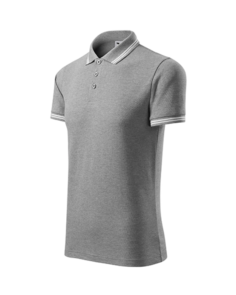 Pánská polokošile s dvojitým kontrastním proužkem na límci a manžetě. Límec a manžety na rukávech z žebrového úpletu 1:1. Střih s bočními švy, zpevněný ramenní šev, léga s 3 knoflíčky v barvě materiálu, vnitřní průkrčník začištěn páskou z vrchového materiálu.