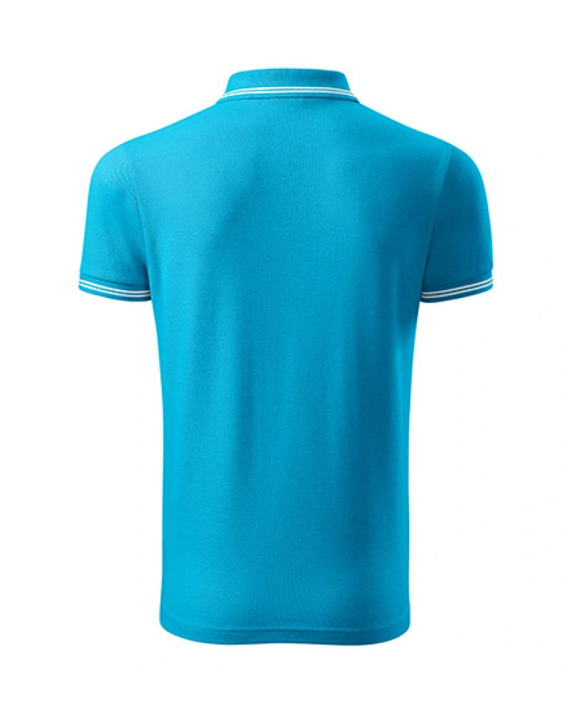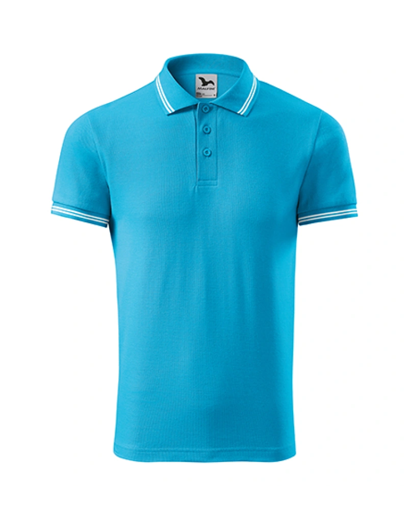 Pánská polokošile s dvojitým kontrastním proužkem na límci a manžetě. Límec a manžety na rukávech z žebrového úpletu 1:1. Střih s bočními švy, zpevněný ramenní šev, léga s 3 knoflíčky v barvě materiálu, vnitřní průkrčník začištěn páskou z vrchového materiálu.