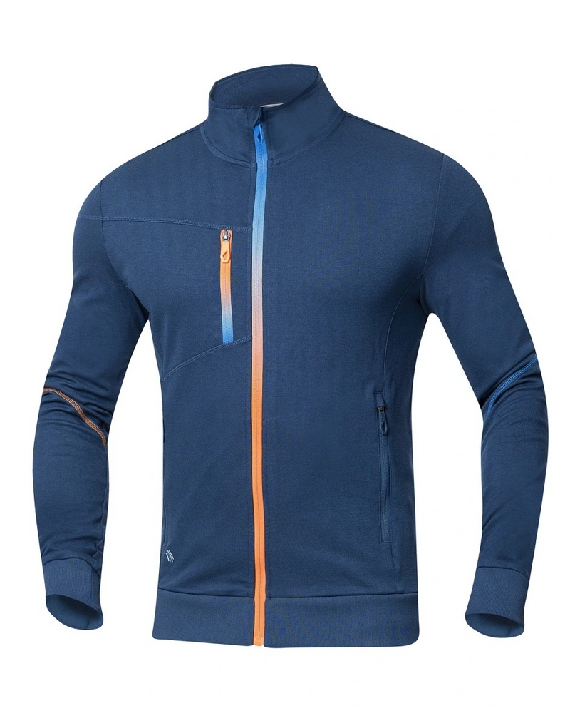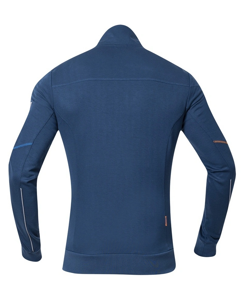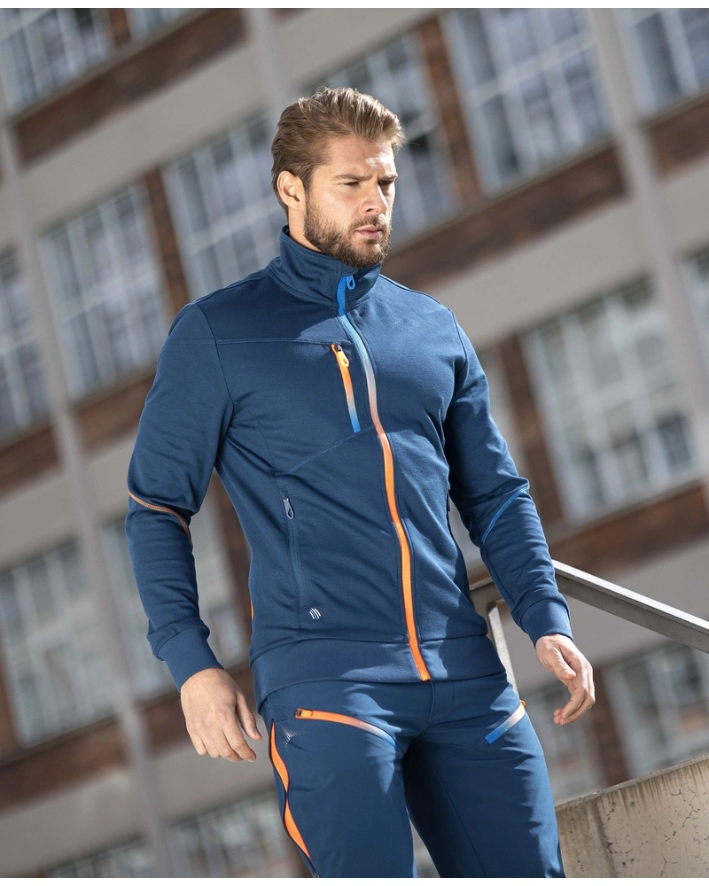 Pánská mikina na zip, pas a rukávy ukončeny pružnou manžetou, zesílené panely na loktech, náprsní kapsa na zip, boční kapsy na zip, reflexní doplňky.