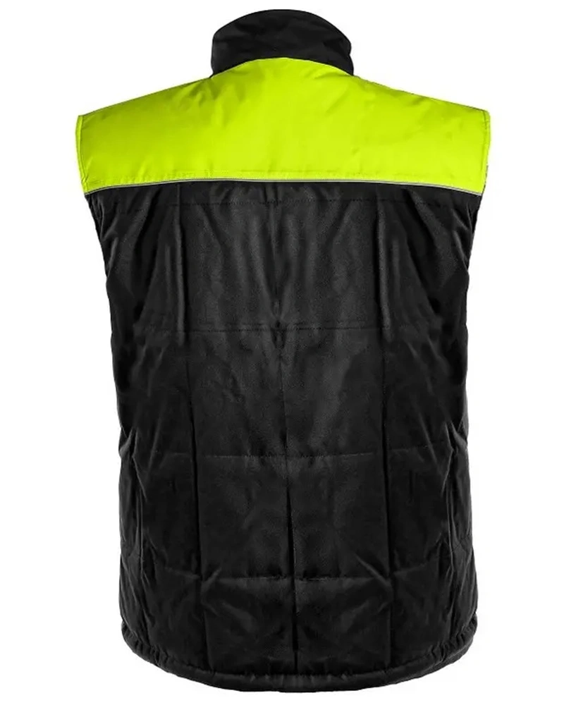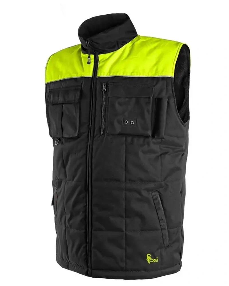 Pánská zateplená vesta, voděodolná s fleecovým límcem, reflexní výpustky, zapínání na zip, stahování v dolním okraji. Kapsy: spodní dvě kapsy s reflexními výpustky zapínané na zip, náprsní kapsy: na pravé straně dvě malé kapsy zavírané na patky se suchým zipem, na levé straně jedna kapsa na zip, druhá zavíraná na patku se suchým zipem a malým tunelem na tužku. Jedna vnitřní kapsa na pravé straně.Více informací