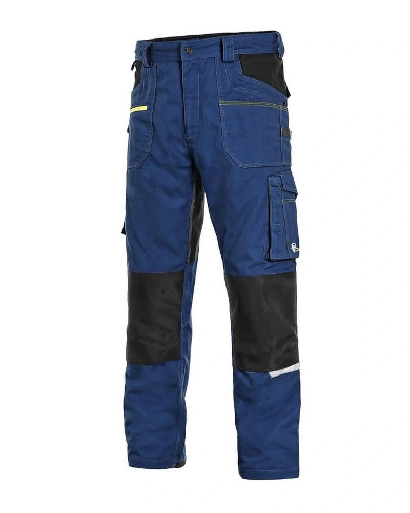 Pánské montérkové kalhoty, strečová tkanina umožňující volný pohyb, pas s poutky na opasek, přední kapsy s kapsou na zip, multifunkční kapsy na obou stranách, kolena zesílena 600D polyesterem s možností vložení kolenních výztuh, dvě zadní kapsy - jedna s klopou, zadní spodní lem nohavice vyztužen 600D polyesterem, reflexní doplňky. Doporučené použití: strojírenství, stavebnictví, lehký průmysl, automobilový průmysl, logistika, skladová manipulace, spedice, autoservisy, údržba, montáže, zemědělství, zahrada, hobby.Více informací
