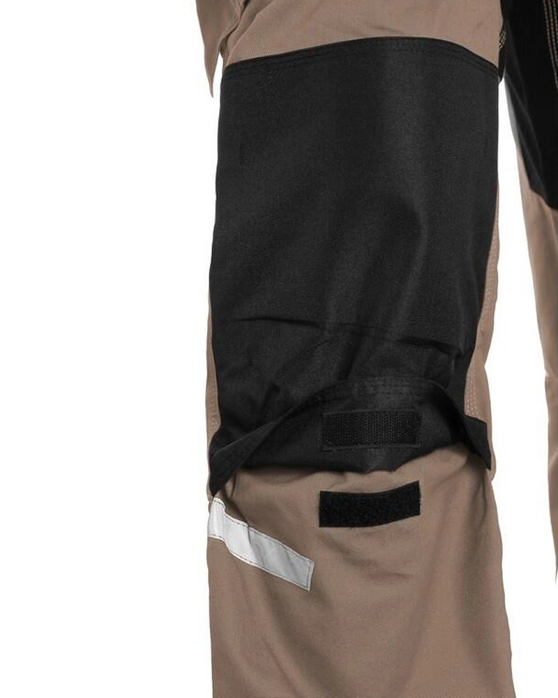 Pánské montérkové kalhoty s náprsenkou, náprsní kapsa s klopou, pas s poutky na opasek, v zadní části guma s knoflíkem pro přizpůsobení velikosti, přední klínové kapsy, multifunkční kapsy na obou stranách, kolena zesílena materiálem 600D polyester s možností vložení kolenních výztuh, dvě zadní kapsy s klopami, spodní část nohavic vyztužena materiálem 600D polyester, šle s gumou vzadu, reflexní doplňky.