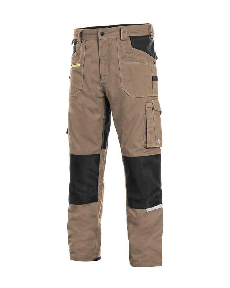 Pánské montérkové kalhoty, strečová tkanina umožňující volný pohyb, pas s poutky na opasek, přední kapsy s kapsou na zip, multifunkční kapsy na obou stranách, kolena zesílena 600D polyesterem s možností vložení kolenních výztuh, dvě zadní kapsy - jedna s klopou, zadní spodní lem nohavice vyztužen 600D polyesterem, reflexní doplňky. Doporučené použití: strojírenství, stavebnictví, lehký průmysl, automobilový průmysl, logistika, skladová manipulace, spedice, autoservisy, údržba, montáže, zemědělství, zahrada, hobby.Více informací