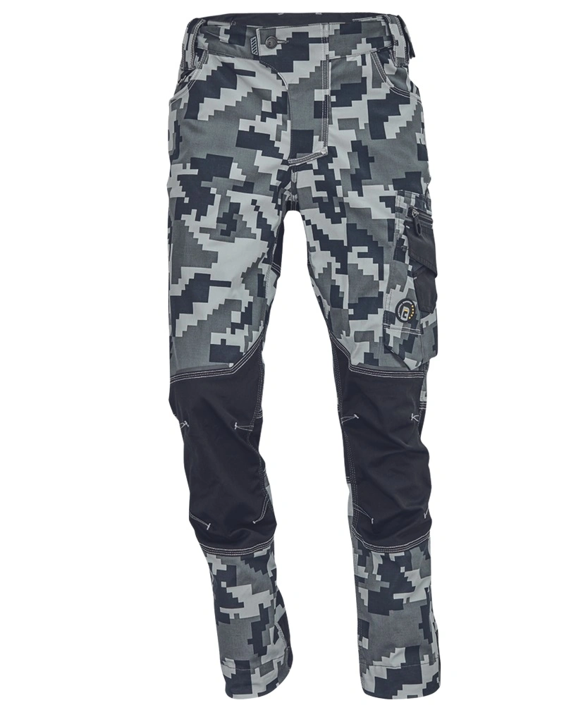 Pánské pracovní kalhoty s pružným pasem, elastický inovativní materiál TRIFIBETEX® s kamuflážovým potiskem, odolné trojité prošití nohavic a sedu, CORDURA® zesílení v oblasti kolen, prostorné multifunkční přední kapsy s poutky na nářadí, reflexní prvky v barevném odstínu, nastavitelná délka nohavic.Více informací