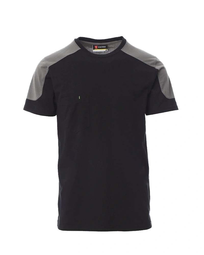 Tričko dvoubarevné, kapsička na hrudi s očkem na tužku, skryté prošití límečku a postranní vyztužovací páska.