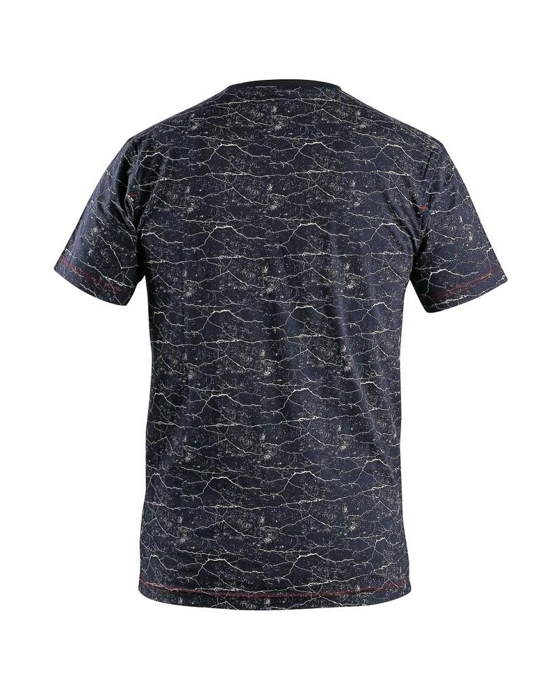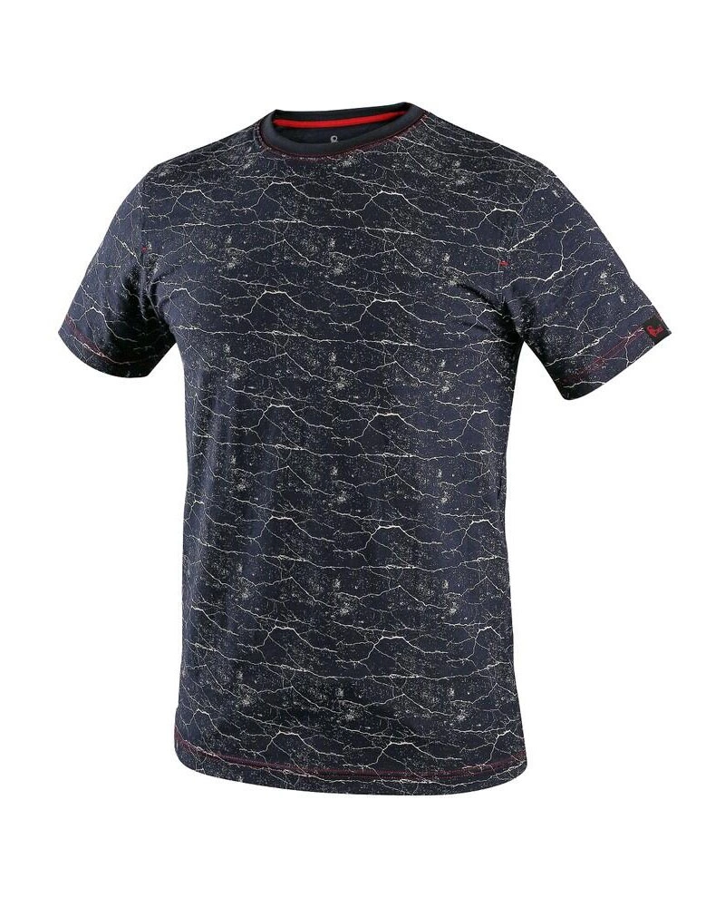 Pánské tričko s krátkým rukávem, kulatý průkrčník, mramorový potisk. Zpevňující krční páska v červené barvě, zpevňující ramenní páska, boční švy. Finální silikonová úprava materiálu, která zajišťuje vyšší měkkost a odolnost vůči zašpinění. Použití v práci i pro volný čas.