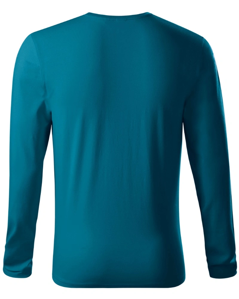 Pánské tričko s dlouhým rukávem. Přiléhavý střih s bočními švy, průkrčník lemován žebrovým úpletem 1:1. Zpevnění ramenních švů páskou.