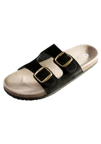 Korkové pantofle s podrážkou z pěnové pryže a koženým svrškem. Svršek: kůže Podešev: guma