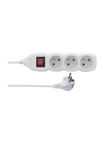 Bílý prodlužovací přívod se 3 zásuvkami. Prodlužovací kabel je ohebný kabel opatřený na jednom konci vidlicí, na druhém spojkou. Slouží k připojení elektrických spotřebičů do zásuvky pevné elektroinstalace. Používá se všude tam, kde délka připojovací šňůry pevně spojené se spotřebičem nestačí k napojení do nejbližší zásuvky. Délka: 2m, 3 m, 5m Počet zásuvek: 3 Vypínač: ne Barva: bílá Průřez vodiče: 1,0 mm2 Napětí: 250 V~ Krytí: IP20 Typ izolace: PVC Vodič: H05VV-F3G Materiál zásuvky a vidlice: plast