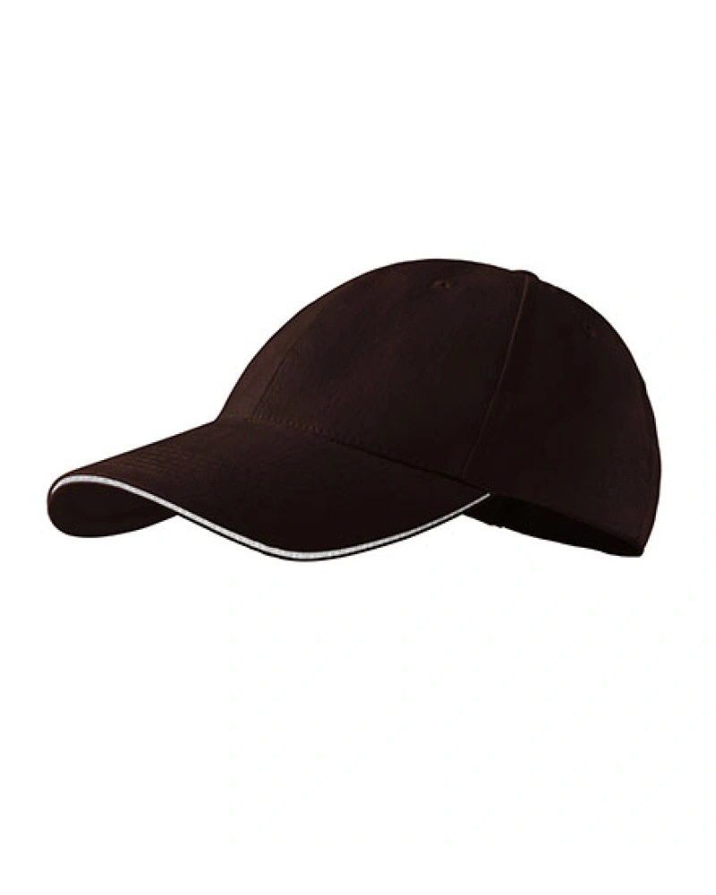 Čepice s kšiltem, šestipanelová, reflexní doplňky, zapínání na suchý zip, zadní díl ze síťoviny.