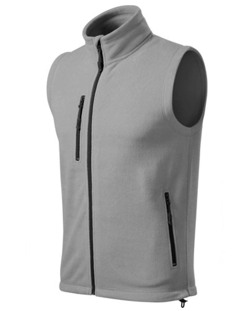 Kvalitní unisexová fleecová vesta klasického střihu. Dvě přední lištové kapsy se spirálovým zipem. Možné stáhnout dolní lem elastickou šňůrkou. Na vnější straně vesty antipillingová úprava. Vnitřní průkrčník začištěn páskou v barvě vrchového materiálu.