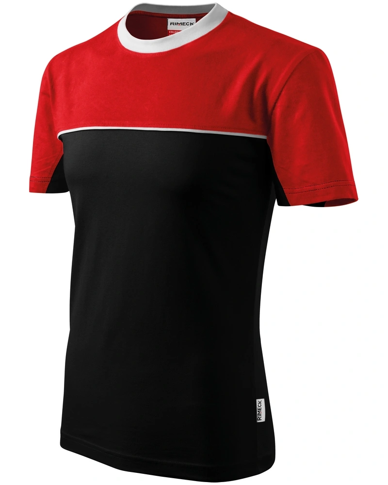 Triko unisex v dvoubarevném provedení, střih s bočními švy, vodorovný členící šev s všitým proužkem, lem průkrčníku z žebrového úpletu 1:1 s 5 % elastanu, zpevňující páska od ramene k rameni.Více informací