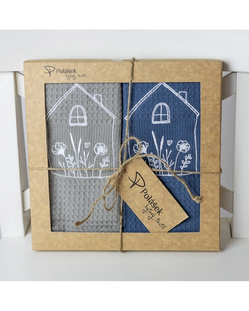 Vysoce kvalitní sada 2 ks VAFLOVÝCH utěrek v krásném dárkovém balení. Materiál 100% bavlna a jemnost příze zaručí vysokou savost.Více informací